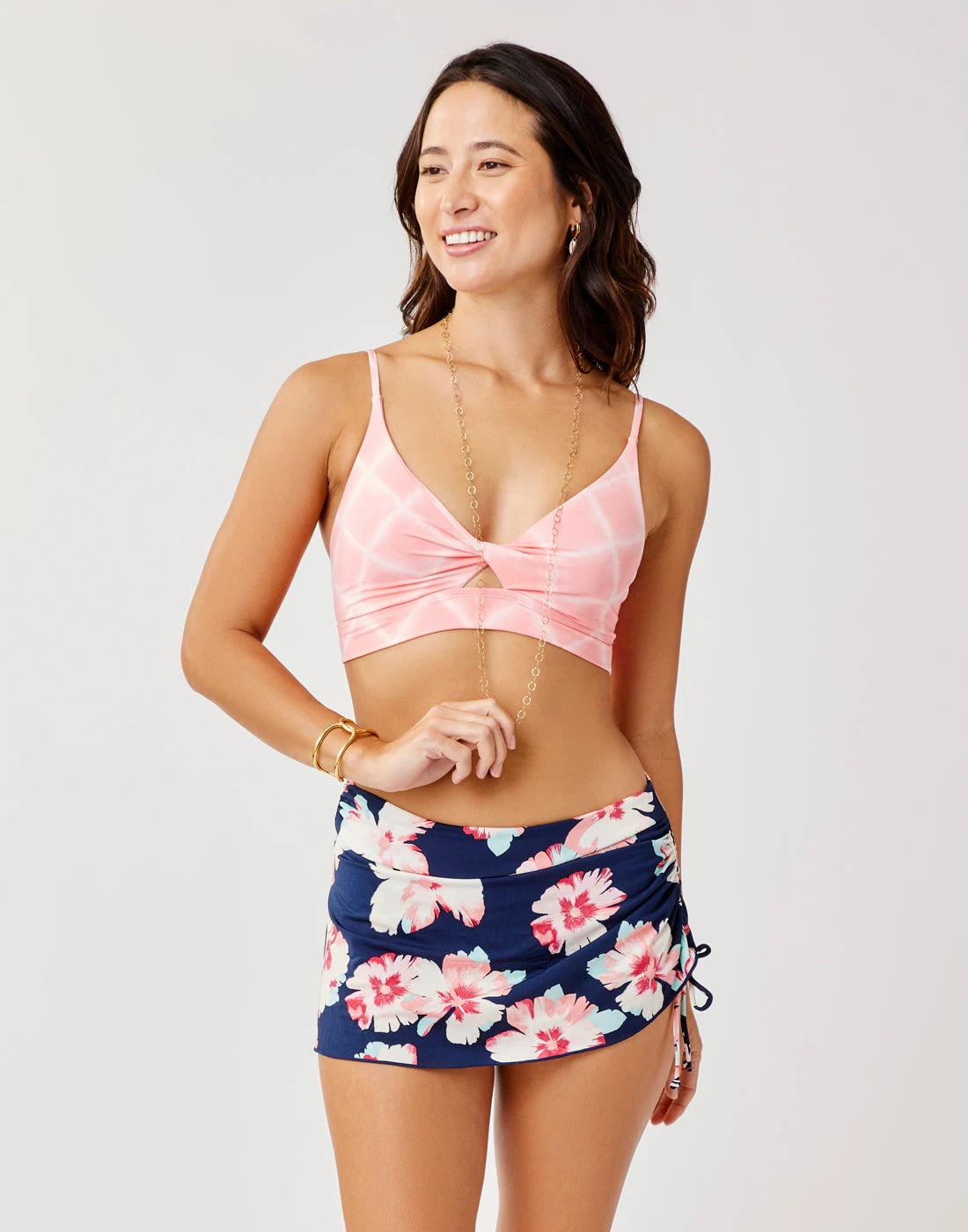 For a little more coverage with a feminine, flirty feel, the Hoku Swim Skirt was constructed with a built in bikini bottom, ruching at waist, and a cinchable side tie for an adjustable hem length. Keeps your rear covered, lets your playful spirit shine.