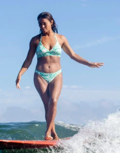 Based on our Stinson Bikini, the long torso of the tankini gives coverage where needed. The athletic t-back style is recommended for high levels of activity.